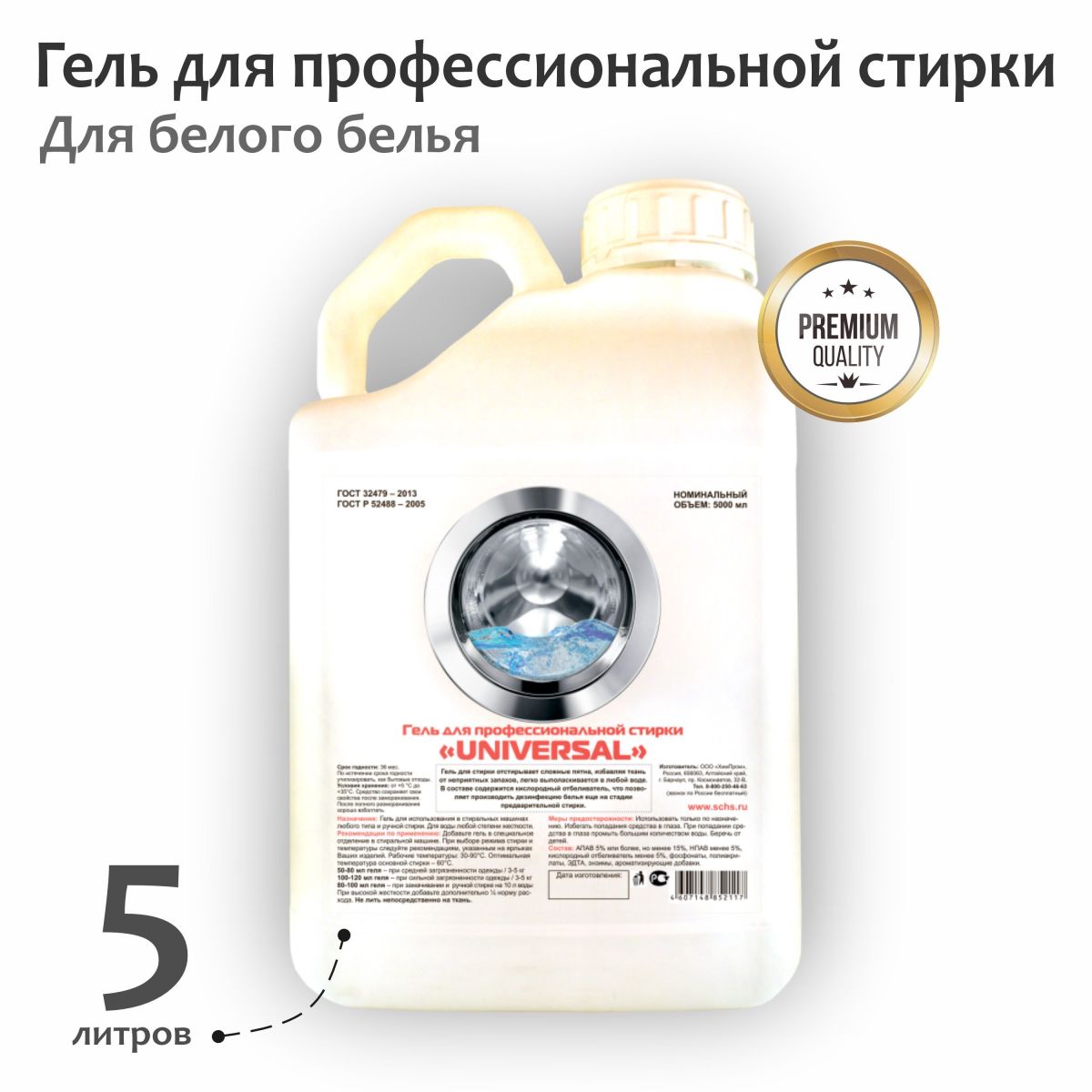 Читать все статьиГель UNIVERSAL для профессиональной стирки Белого белья 5 л.