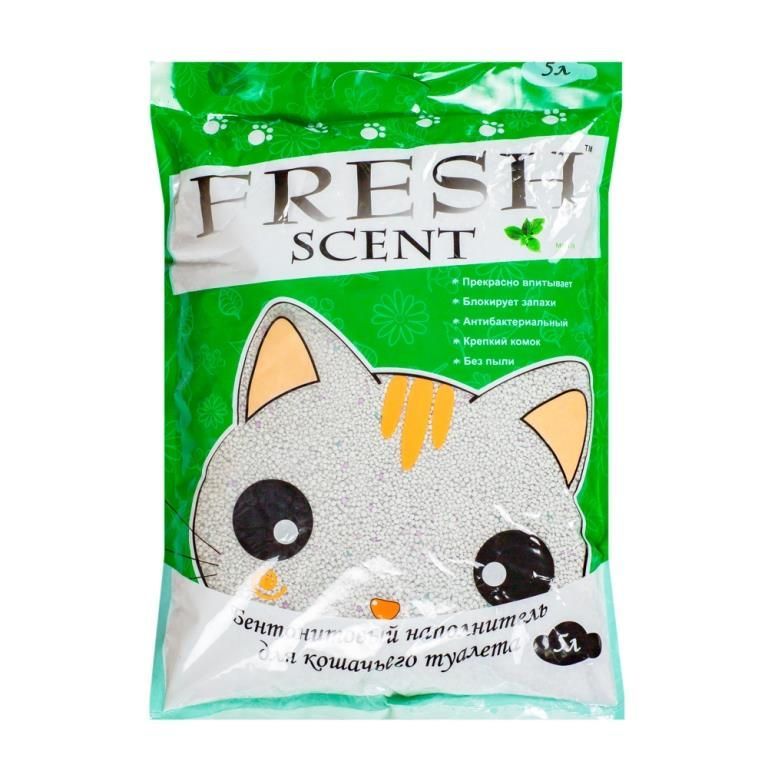 Комкующийся наполнитель "Свежесть Мята" объёмом 10 литров мягко ароматизирует пространство прохладным мятным запахом, отлично справляется с влагой и неприятными запахами.