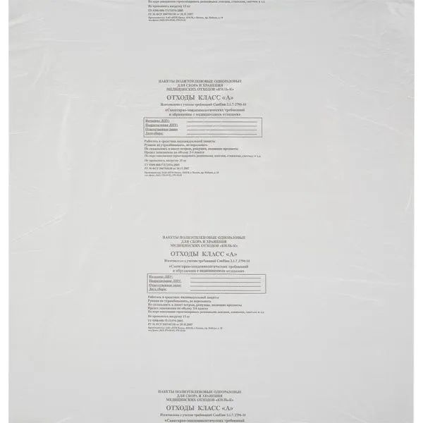 Читать все статьиПакет для мед отх ПТП Киль А/белые 800х900х12