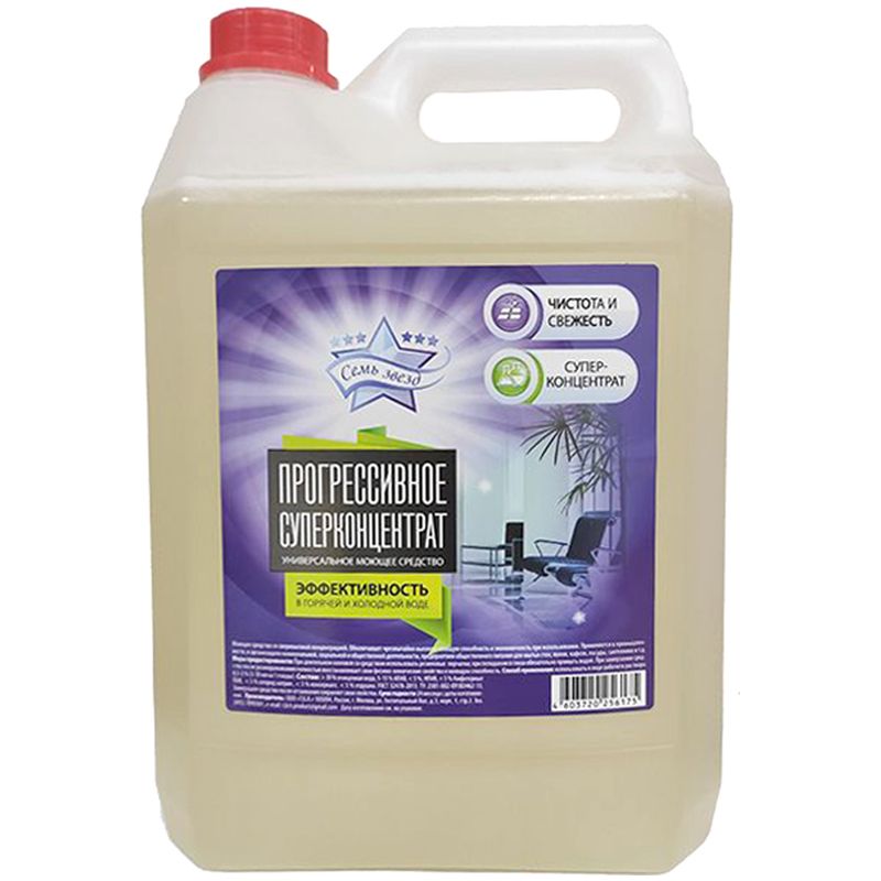 Читать все статьиСемь звёзд СУПЕРКОНЦЕНТРАТ универсальное моющее средсвто 5 л.