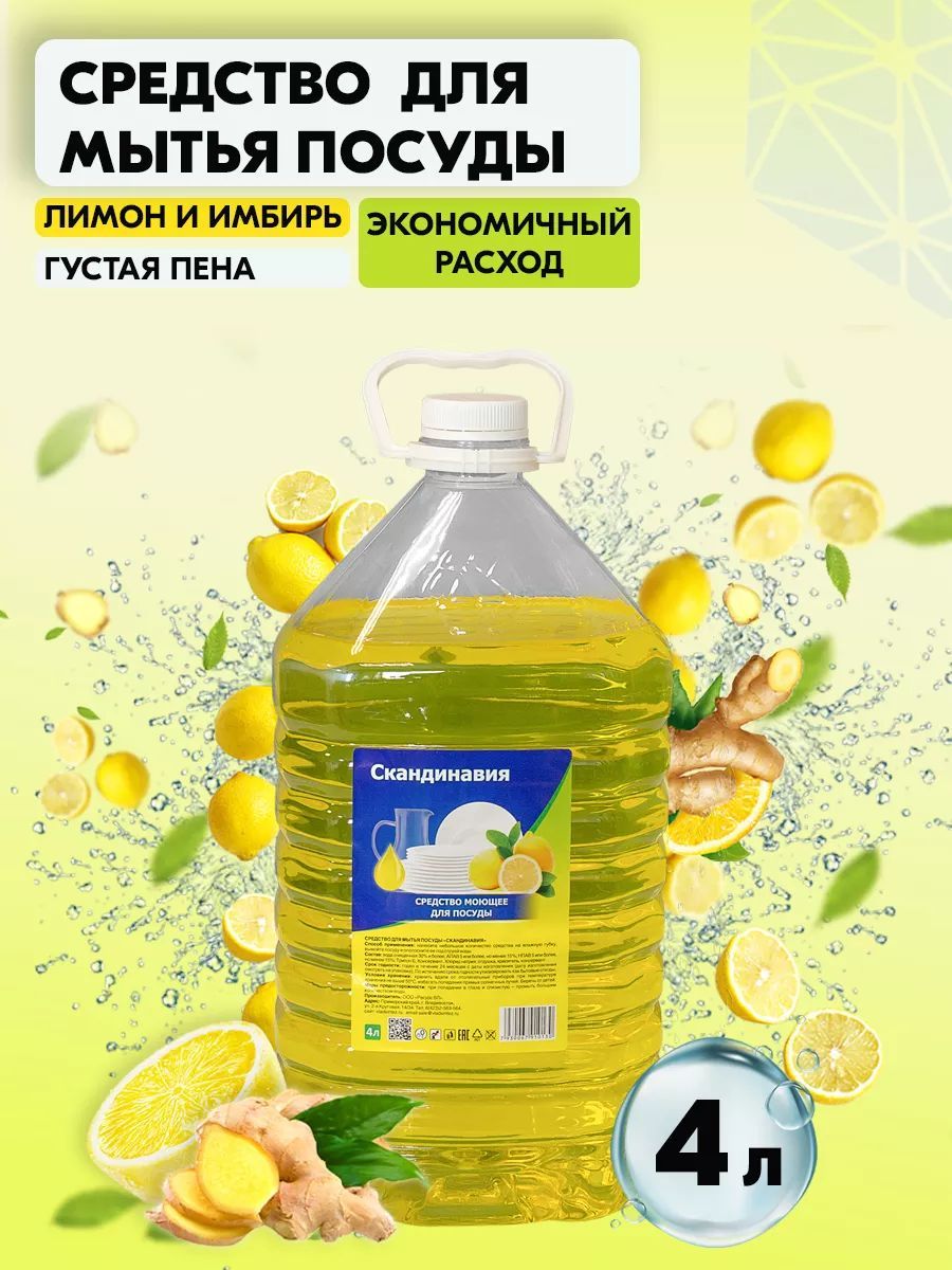 Читать все статьиСредство для мытья посуды «Скандинавия» Свежий лимон 4 л