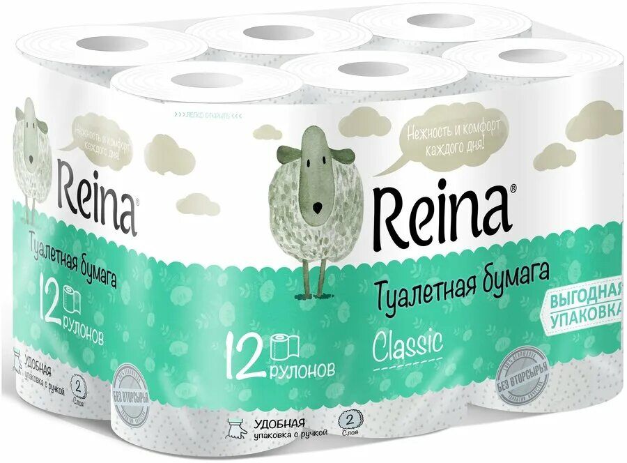 Читать все статьиТуалетная бумага Reina Classic 2 слоя, 12 шт/уп