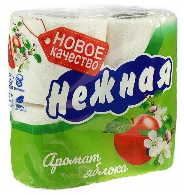 Читать все статьиТуалетная бумага Нежная 4 рулона 2 слоя Арома Яблоко