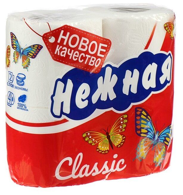 Читать все статьиТуалетная бумага Нежная 4 рулона 2 слоя Классика
